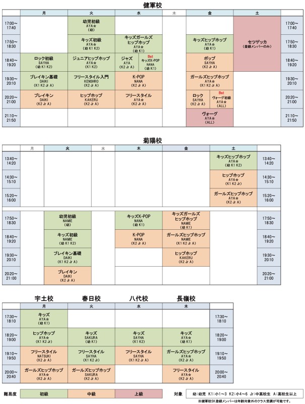 全校レッスンスケジュール